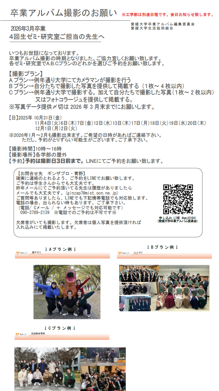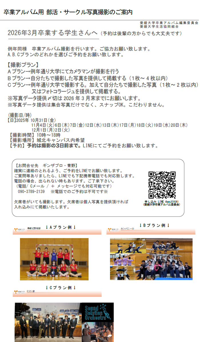 ■部活・サークル写真については案内をご確認ください。 今年はコロナの影響で集合写真撮影がちょっと…という方は、部活やサークルで 今まで取りだめている写真の掲載を卒業アルバムにすることもできます。